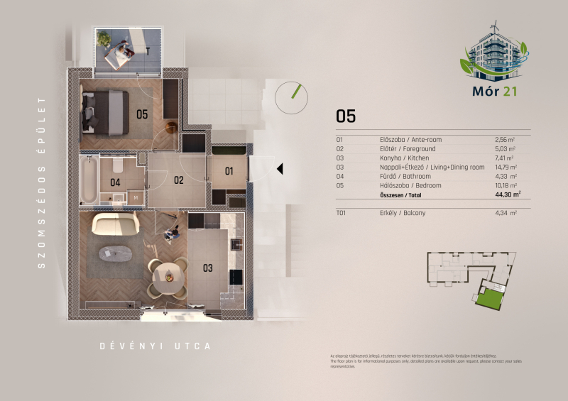 A Mór utca és Dévényi utca sarkán, egy hangulatos saroktelken épül fel ez a 23 lakásos, modern megjelenésű, mégis a környezetébe harmonikusan illeszkedő társasház. A kivitelezés során kiemelt figyelmet kapott a benapozás, a jól élhető terek kialakítása, valamint a magas műszaki tartalom.