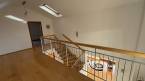 Világos, ablakos lépcsőház köti össze a ház három szintjét, amelynek középső szintjén van a bejárat és innen nyílik a földszinti lakás. Az első emeletről az emeleti lakás, a legalsó szintről pedig a kazánház és a közlekedő folyosó érhető el.