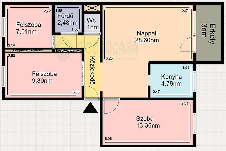 Az ingatlan könnyedén 3 szobássá, vagy amerikai konyhássá alakítható.
