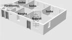 A lakás elosztását tekintve három szobából, nappaliból, konyhából, fürdőszobából, WC-ből, kamrából és közlekedőből áll.