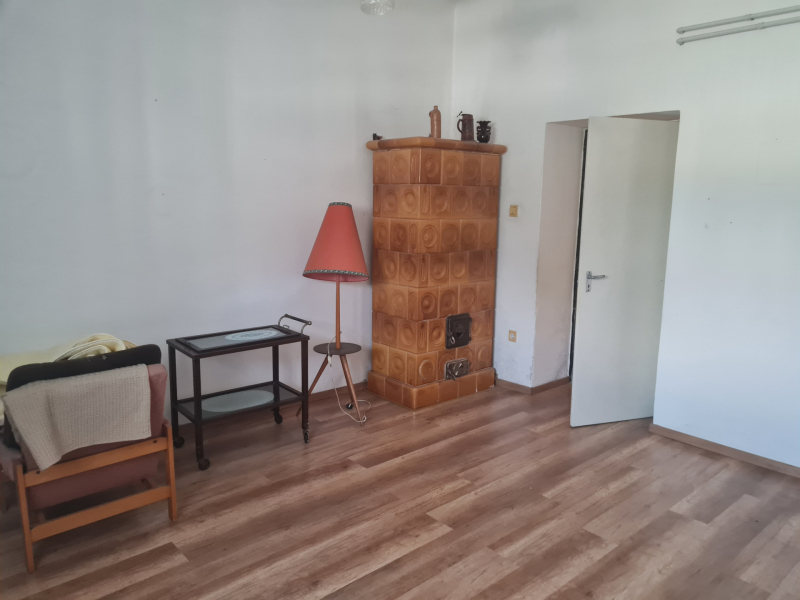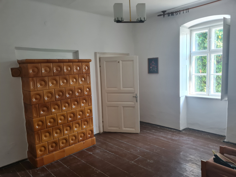 A központi közös helyiségből nyílik a konyha - melyben egy kamra is helyet kapott-, a hálószobák, fürdőszoba, valamint itt található a ház fűtésének ellátásáért felelős cserépkályha is.