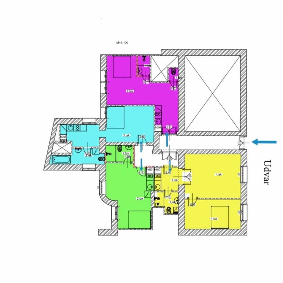 A 4 teljesértékű lakásba egy privát folyosóról nyíló _ külön bejáratokkal kialakított bejáraton keresztül juthatunk.