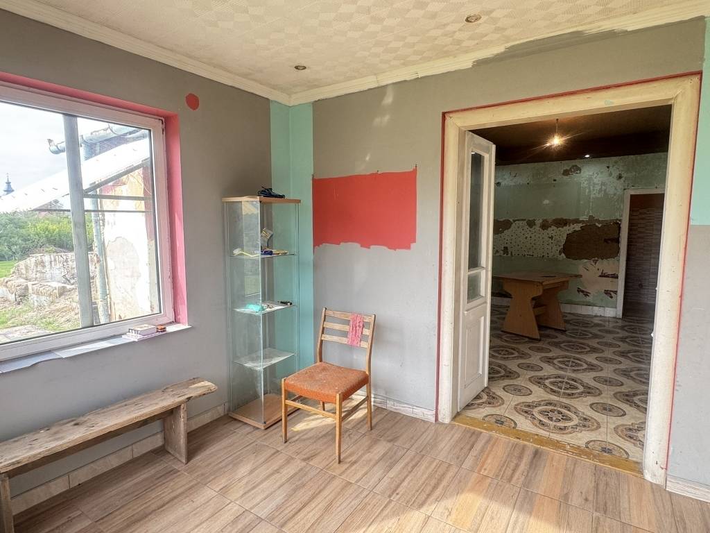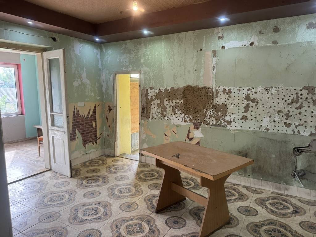 A ház 80 nm és 1345 nm a teljes telek. A ház elosztása: kényelmes előszoba, két különnyíló szoba, fürdő, konyha, konyha / szoba, tároló.