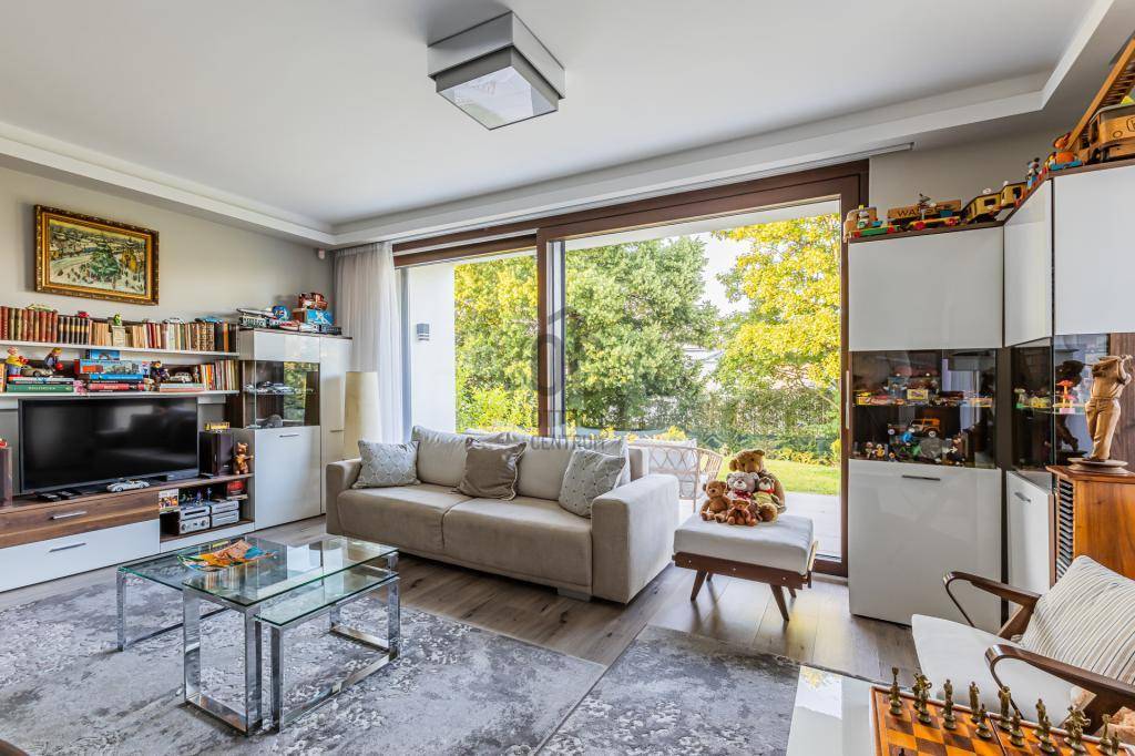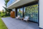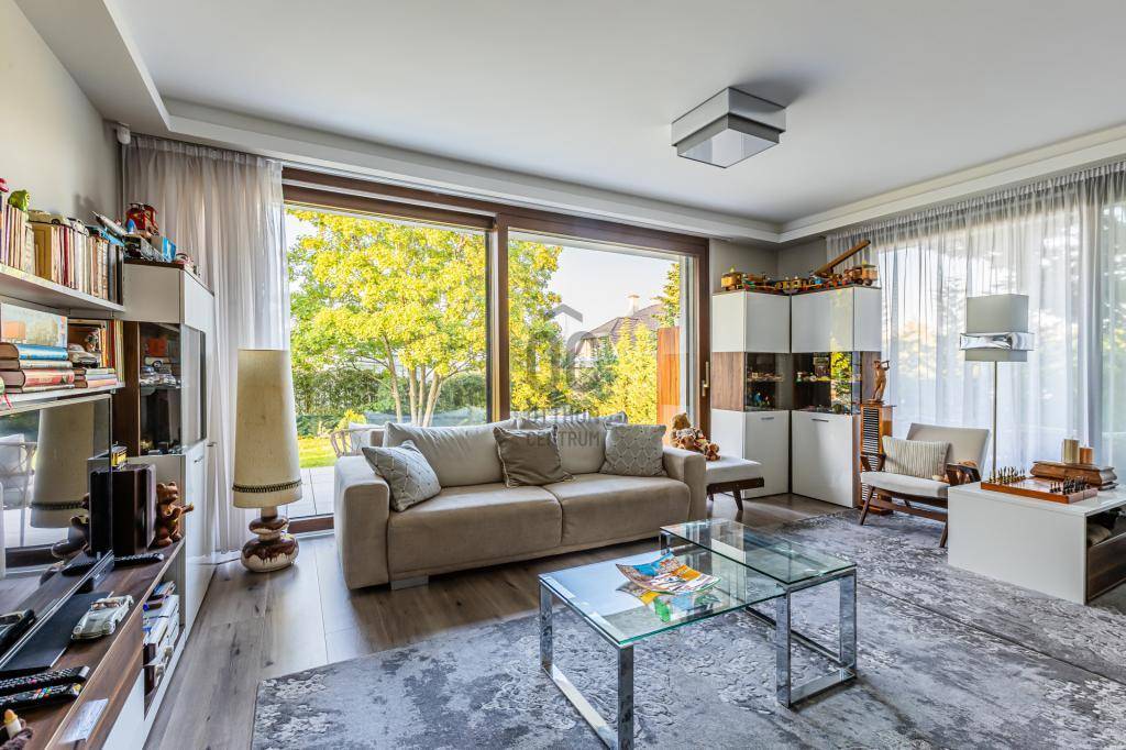 A fűtésről, hűtésről Daikin hőszivattyú gondoskodik, mely fal- és padlófűtést, a meleg nyári napokon pedig fal hűtést biztosít. Kiváló minőségű fa nyílászárók, a nappaliban hatalmas tolóajtók kerültek beépítésre, melyek valós összeköttetést biztosítanak a lakótér és a kert között.