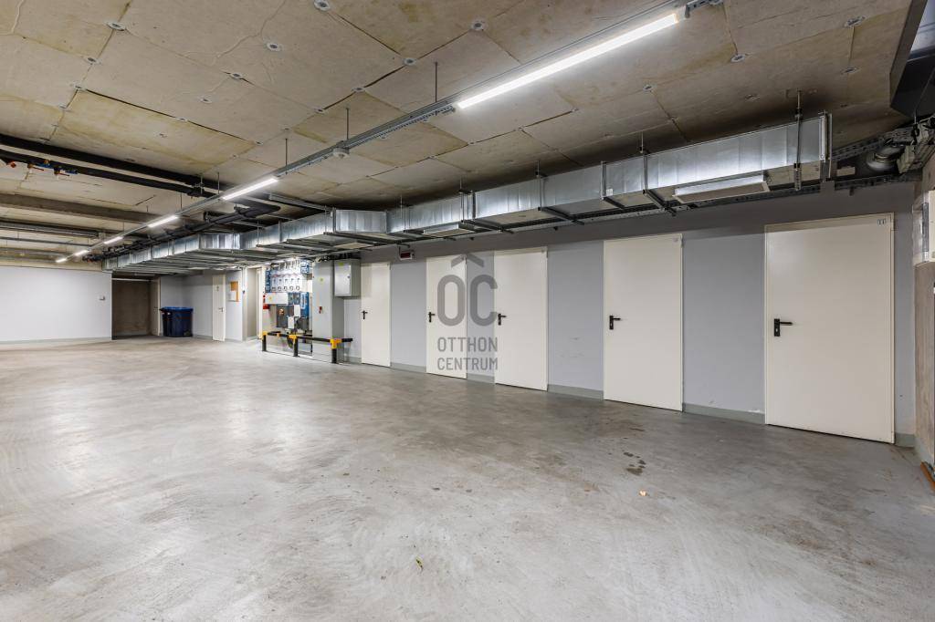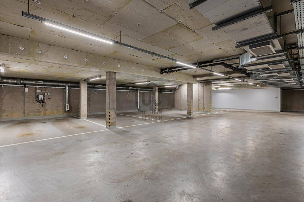 A lakáshoz tartozik egy tágas teremgarázs férőhely, melyhez fűthető lehajtó vezet, valamint szintén a garázs szinten egy 6 m2-es tároló is. A garázs és a tároló kötelezően megvásárolandó.