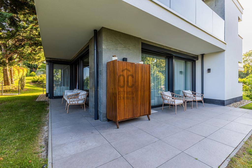 Az ingatlan egy öt lakásos, modern, liftes társasház földszintjén helyezkedik el, amely 2021-ben került átadásra, újszerű állapotú