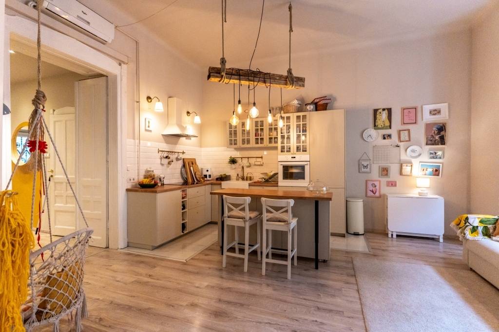Fektessen be a jövőbe egy kivételes ingatlanba a Budapest 08. kerületének szívében, a Corvin negyedben! Ez a használt lakás nem csupán egy új otthon, hanem egy remek befektetési lehetőség is, amelynek alapterülete 77 négyzetméter. Az ingatlan kettő tágas szobával s egy amerikai konyhás nappalival rendelkezik, melyek kiválóan alkalmasak akár családi életre, akár bérbeadásra, így biztosítva Önnek a folyamatos jövedelemforrást. A lakás állapota kiváló, így azonnal költözhető, nem igényel komolyabb felújítást. A fűtés gázkonvektoros, míg a nyári hónapokban a klímaberendezés gondoskodik a kellemes hőmérsékletről. A Corvin negyed Budapest egyik legdinamikusabban fejlődő területe, ahol a modern városi élet minden előnye megtalálható. A környék ellátottsága kiváló, hiszen számos üzlet, étterem és kávézó várja az itt élőket és a látogatókat. A közeli Corvin Pláza nem csupán vásárlási lehetőségeket kínál, hanem kulturális programoknak is otthont ad, így mindig van mit csinálni a környéken. A közlekedés szempontjából is ideális helyszín, hiszen a környéken több busz- és villamosmegálló található, amelyek gyors és kényelmes kapcsolatot biztosítanak Budapest többi kerületével. Az M3-as metróvonal közelsége lehetővé teszi, hogy a város bármely pontja könnyedén elérhető legyen, így a mindennapi ingázás is egyszerűvé válik. A Corvin negyed biztonságos és csendes, ideális választás mindazok számára, akik a nyüzsgő városi élet mellett mégis szeretnének egy nyugodt otthont. Ez az ingatlan nem csupán egy lakás, hanem egy lehetőség, hogy részesedjen Budapest fejlődéséből. A befektetők számára különösen vonzó lehet, hiszen a környék folyamatosan emelkedő ingatlanárakkal büszkélkedhet, így a jövőbeni értéknövekedés biztosítja a biztonságos befektetést. Ne habozzon, hiszen egy ilyen lehetőség ritkán adódik! Amennyiben kérdései merülnének fel, vagy szeretné megtekinteni ezt a kivételes ingatlant, bizalommal kereshet minket. Szívesen állunk rendelkezésére, hogy segíthessünk a legjobb döntés meghozatalában. Az Ön elégedettsége és bizalma a legfontosabb számunkra!