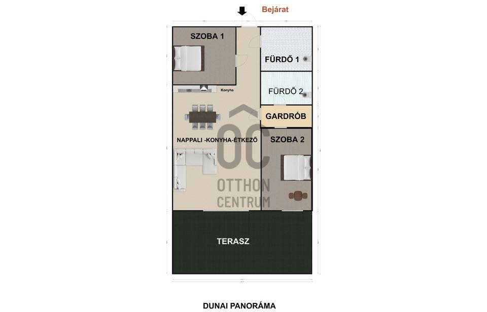 Elosztás: 3 szoba, 2 fürdőszoba