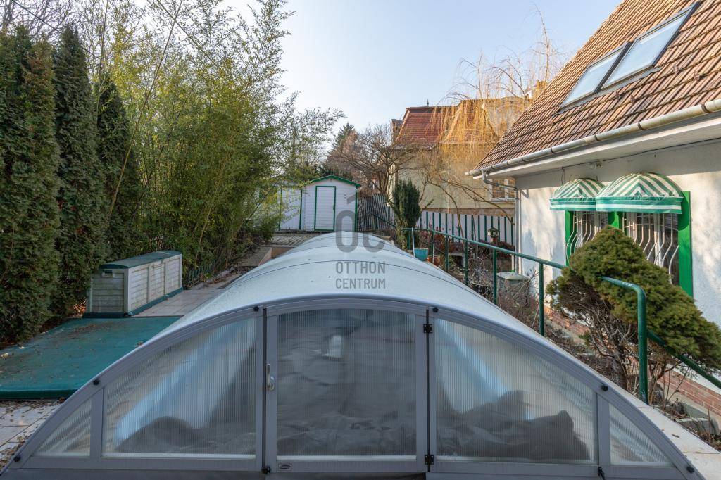 187 nm-es, 3 szintes, nappali+5 szobás, duplakomfortos családi ház kerti medencével és lifttel Adyligeten, az erdő szomszédságában.