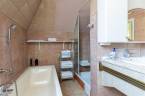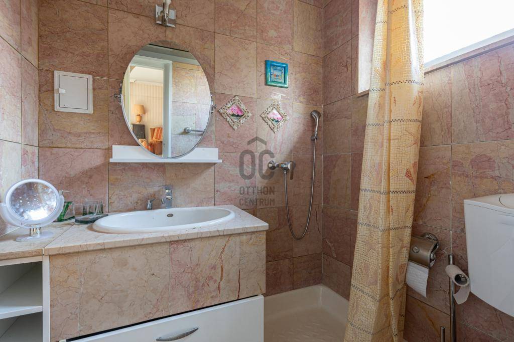 Első emelet: egy tágas és kettő kisebb hálószoba, közlekedő, nagy fürdőszoba zuhanyzóval és káddal