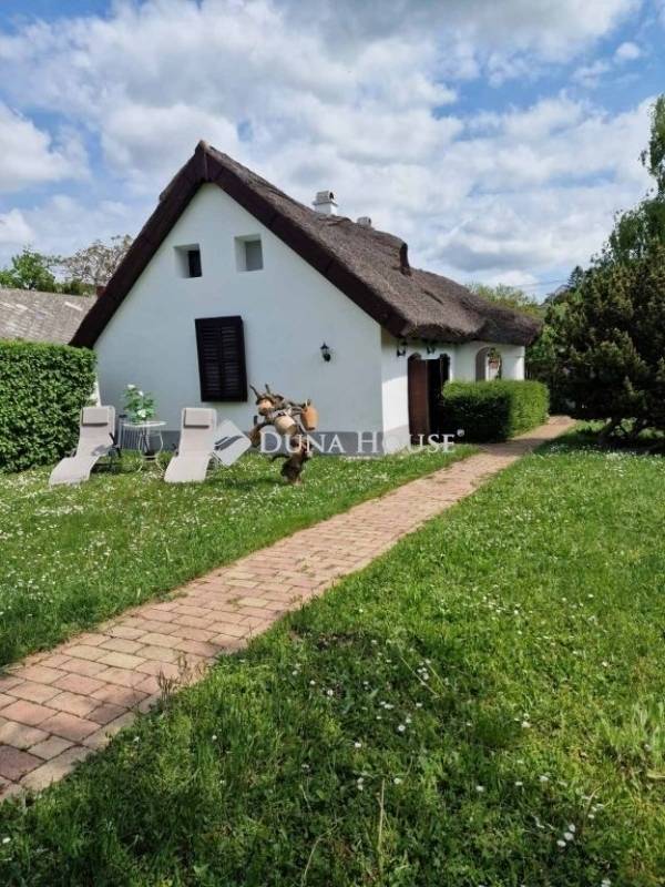 Eladó Balatonkenese központjában, egy 1890 épült, 110 m²-es, 3 szobás, tornácos, nádtetős, felújított parasztház 785 m²-es saroktelken, nyári konyhával és tárolóval.Az épület több ütemben újult meg: 20 éve teljes vezetékcsere történt (víz, villany, csatorna), 7 éve a tetőtér beépítése, nyílászárók és burkolatok cseréje, fürdőszobák kialakítása, valamint a nádtető felújítása, amelyet 2025-ben ismét karbantartottak. A 60 cm vastag vályogfalak utólagos szigetelést és sávszellőztetést kaptak. Fűtését cserépkályha, vaskályha és infrapanelek biztosítják, hűtéséről digitális klíma gondoskodik.A 785 m²-es telek gondozott, beültetett kerttel rendelkezik, benne 16,7 m²-es nádtetős nyári konyha és 8 m²-es faház található, több autó beállása is megoldott. Az ingatlan berendezéssel és gépesítve eladó, 910 fő befogadására alkalmas, így akár vendégházként is használható.Elhelyezkedése ideális: csendes, lakott környéken van, 5 perc sétára a központtól, és kb. 15 perc sétára a Vak Bottyán strandtól.Bővebb információért forduljon hozzám bizalommal!