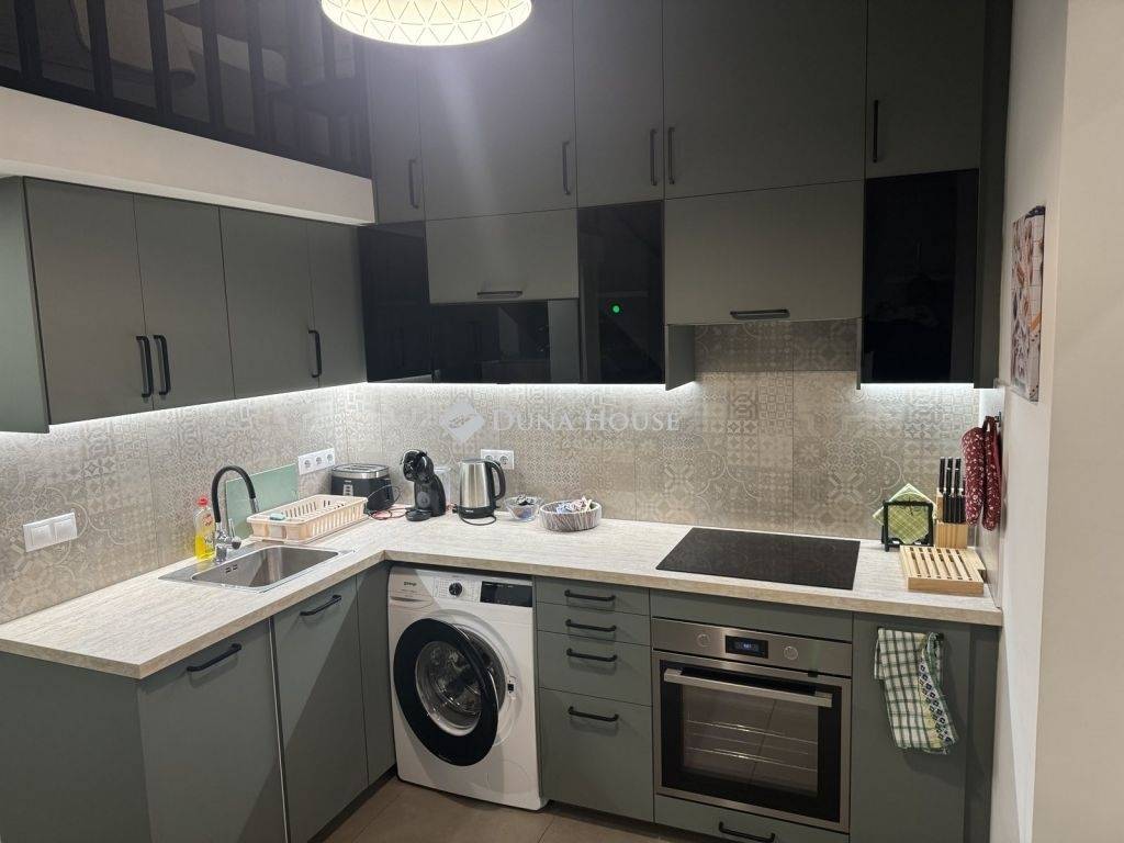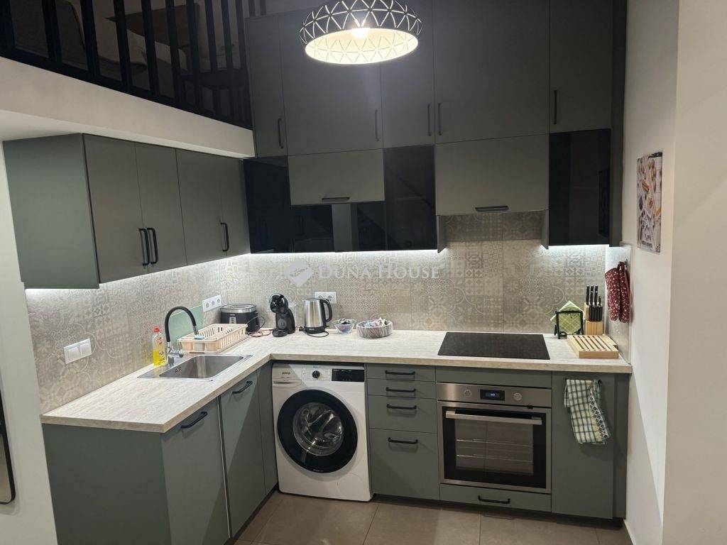 Kiadó egy teljesen berendezett, 2021-ben teljes körűen felújított apartman.Az utcára néző, háromrétegű speciális üvegezésű ablakok kiváló hangszigetelést biztosítanak, garantálva a nyugodt légkört. A lakás modern, wifin keresztül vezérelhető elektromos padlófűtéssel rendelkezik, amely három különálló fűtőkörre van osztva. További kényelmet nyújt a nappaliban és a galériás hálórészben elhelyezett két nagyteljesítményű inverteres légkondicionáló. Gázszolgáltatás nincs a lakásban.A hálószoba a galérián kapott helyet, amely 9 m²-es, 210 cm-es belmagassággal rendelkezik, és egy „king-” méretű franciaágy biztosítja a kényelmet. A nappali tágas, 20 m²-es, ahol egy kihúzható kanapé (időszakosan két személy számára alkalmas), egy nagy, háromrészes tolóajtós szekrény, valamint egy nagy méretű, tanulásra és home office-ra is alkalmas étkezőasztal található. Emellett egy 40”-os LED TV, két vezetékes internetcsatlakozási lehetőség és több helyről kapcsolható mennyezeti, illetve LED világítás is a nappali része. Az ablakok „black-out” sötétítő függönnyel vannak felszerelve.A konyha kiválóan felszerelt: négyzónás elektromos főzőlap, beépített elektromos katalitikus sütő, mosogatógép, mosógép, nagy méretű kombinált hűtőszekrény, mikrohullámú sütő, kenyérpirító és Nescafé kávéfőző áll rendelkezésre. A főzéshez szükséges eszközök, valamint négy személy számára komplett étkészlet is megtalálható. A konyhapultot LED-sor világítja meg.A fürdőszoba külön fűtéskörrel rendelkezik, törölközőszárítós radiátorral, esőztetős zuhanyzóval és WC-vel.Az apartman optikai szálas internetszolgáltatással, 156 csatornás TV-előfizetéssel (DIGI), erős routerrel biztosított wifivel, valamint riasztórendszerrel van felszerelve. Az ingatlan alapterülete 48 m².