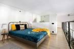 Galéria: A felső szint acélból készült, stabil szerkezet, 220 cm belmagassággal. Kényelmes acéllépcső vezet fel a laminált padlós emeletre, ahol tágas hálórész és külön dolgozósarok került kialakításra ? ideális otthoni munkavégzéshez is.