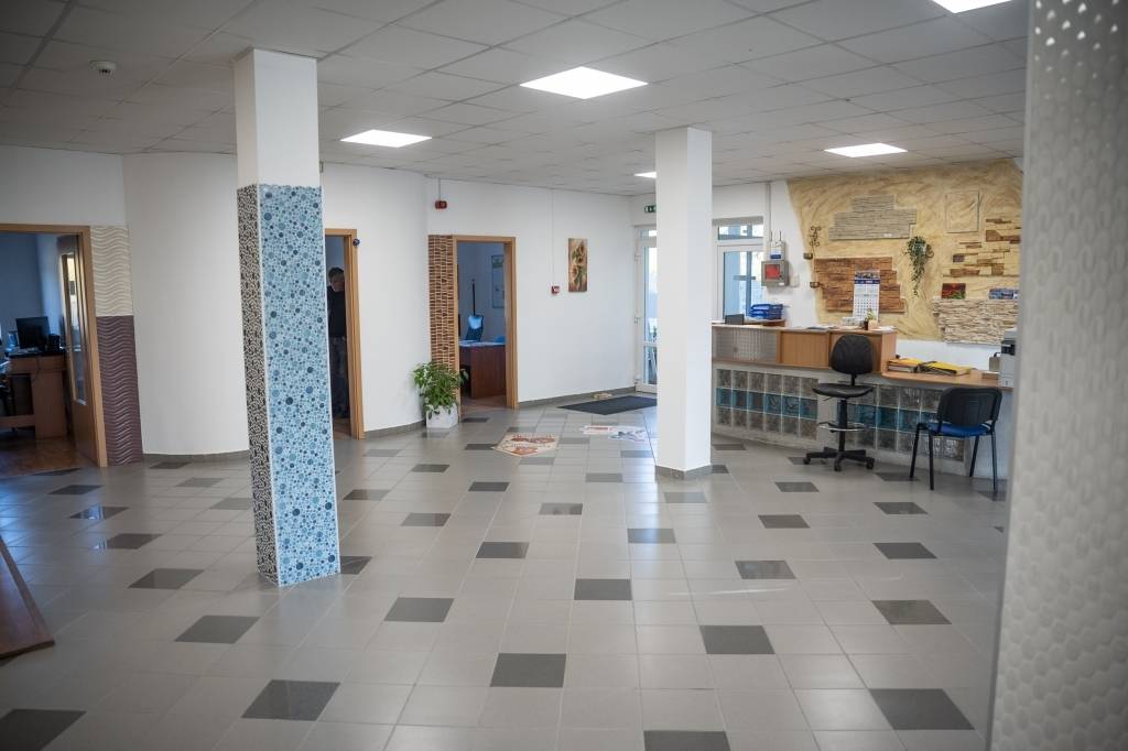 Csarnoképület: Nagy teherbírású, anyagában csiszolt vasbeton padlófelület, 6,20 méter belmagassággal és több nagy méretű tolókapuval.