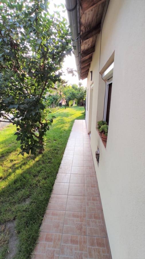 Az ingatlanhoz tartozik egy 684 négyzetméteres rendezett sík telek kert termő gyümölcsfákkal.