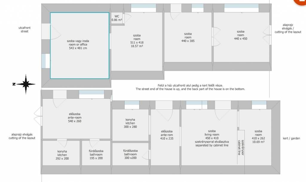 Az ingatlan bejárata a város főutcájára néz, ezért üzleti-irodai célra is kiváló. A 6 szobás, 3 fürdőszobás, 2 konyhás ház azonban 3 különálló bejárattal is rendelkezik, és a telken befelé haladva csendes lakóotthon kényelmét nyújtja. Falai 70 cm vastagságúak, a ház alatt pedig hatalmas kőpincével rendelkezik, ami kb. 35 nm méretű.