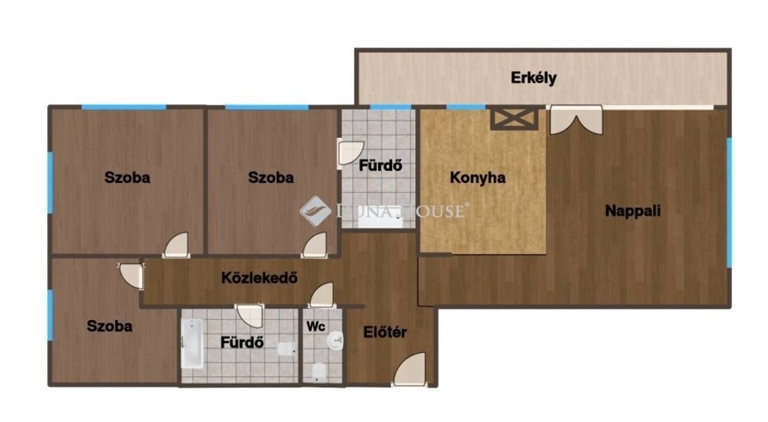 2 fürdőszoba – egyik káddal, másik walk-in zuhanyzóval