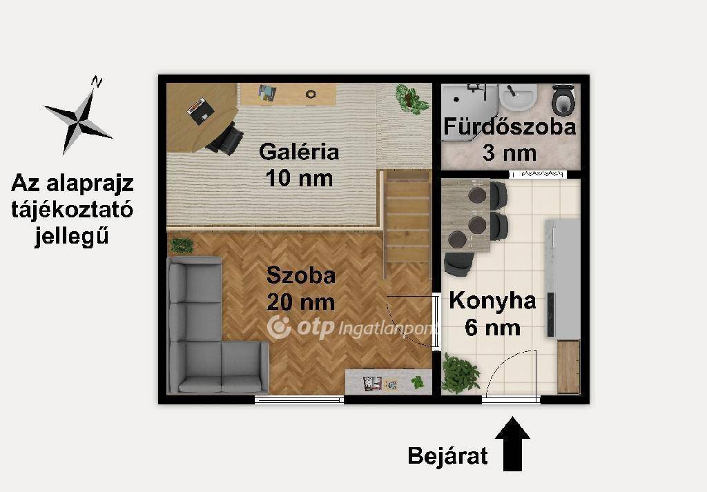 A nagy belmagasságú szoba egy kényelmes fekvőgalériával rendelkezik, növelve ezzel a hasznos alapterületet, ablakai belső udvarra néznek. Az állapotát tekintve felújítandó, így új tulajdonosa teljesen a saját ízlésére alakíthatja otthonát. A közművek mind egyedileg mérhetők, így a fenntartási költsége igen kedvező.