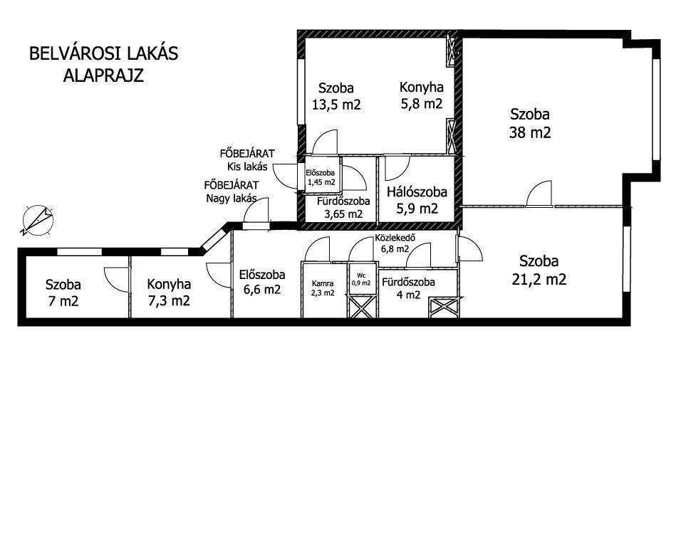 A két lakás tökéletesen használható külön-külön is, de a korábbi kialakításának megfelelően könnyen egybe is nyitható, visszaalakítható. Az ingatlan alaprajz és bejárati ajtó nyitási lehetőség szerint igény esetén akár 3 különálló lakássá is alakítható.
