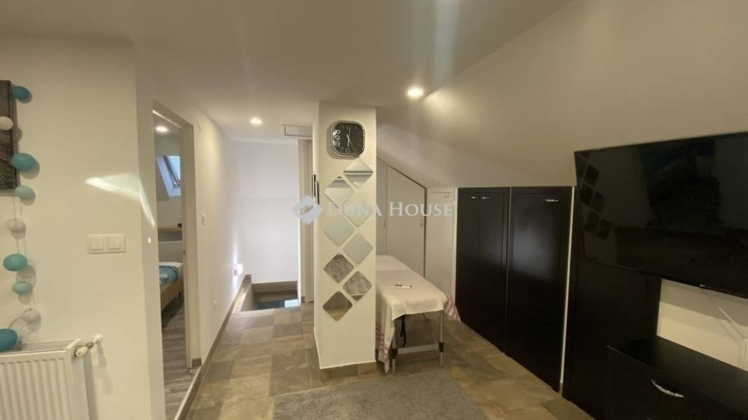 Beépített tetőtér: nappali, konyha, szoba, fürdőszoba + WC, közlekedő