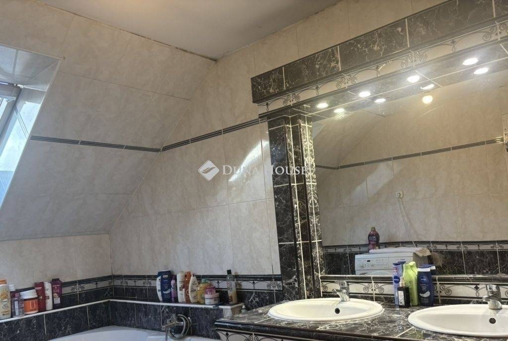Eladó jó állapotú, kétszintes családi ház Budapest XIX. kerületének kedvelt részén.A 2008-ban épült, 200 m²-es ingatlan egy 372 m²-es telken található, félig körbejárható, tágas udvarral és nagy terasszal. Az elülső udvarban egy kisebb autó számára parkolási lehetőség biztosított.A ház belső kialakítása átgondolt és praktikus. A tágas nappali mellett négy külön nyíló szoba, két konyha és két fürdőszoba áll rendelkezésre, így az ingatlan könnyedén kétgenerációs otthonná alakítható. A lépcső alatt praktikus tároló kapott helyet, a padlás pedig további bővítési vagy pakolási lehetőséget kínál.A korszerű műanyag nyílászárók, a kombi cirkó fűtés és a két beépített kandalló többféle, költséghatékony fűtési megoldást biztosítanak, emellett otthonos, hangulatos atmoszférát teremtenek.A környék ellátottsága kiváló: gyalogosan elérhető bolt, hentes, gyógyszertár, iskola, óvoda, cukrászda, játszótér és kutyasétáltató is. Néhány perc sétára több buszmegálló található, ahonnan 10 percen belül megközelíthető a Határ út vagy a Köki Terminál metróállomás (M3). A közeli bevásárlóközpontok és benzinkút tovább növelik a mindennapi kényelem lehetőségeit.Az ingatlan ideális választás nagyobb családok, összeköltöző generációk számára, de befektetési célból is kiváló lehetőség, hiszen elhelyezkedése és adottságai biztos alapot nyújtanak hosszú távra.