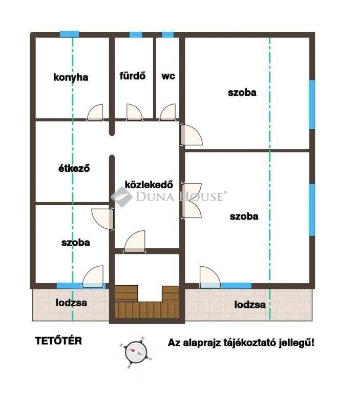 A tetőtérben szintén 3 különnyíló szoba (közülük kettő saját lodzsával), konyha, étkező és külön fürdő-WC került kialakításra.