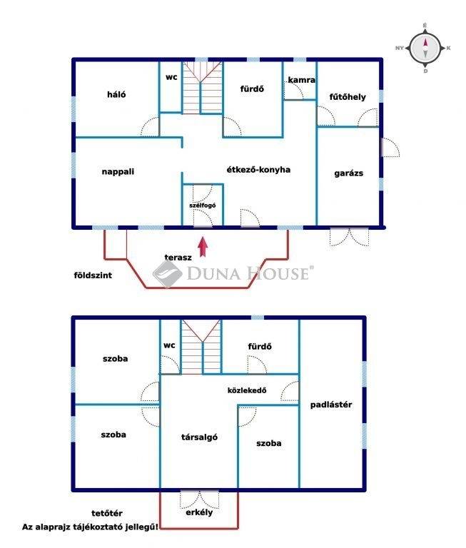 A házban 3+2 félszoba, hatalmas étkező található, a tetőtérben a hálószobák mellett egy kis társalgó került kialakításra.