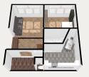 A 66 m?-es (valóságban 70 m?-es) lakás praktikus és jól alakítható alaprajzzal rendelkezik. A tágas hallból nyílik a nappali, egy külön szoba, az étkező és a konyha, melyhez kamra is tartozik. Külön helyiségben kapott helyet a fürdőszoba és az illemhelyiség. A nappali és a szoba ablakai utcai nézetűek, míg a konyha a belső udvar csendes hangulatát hozza be a lakásba. Az elosztásnak köszönhetően könnyedén három szobássá is alakítható, így akár családok számára is ideális választás lehet.