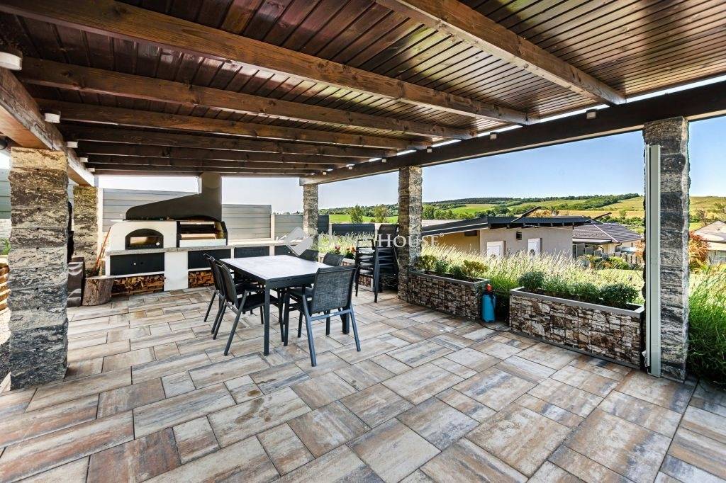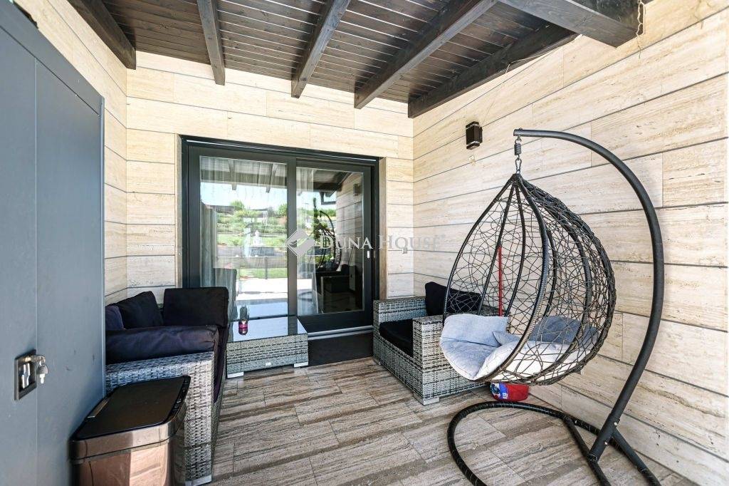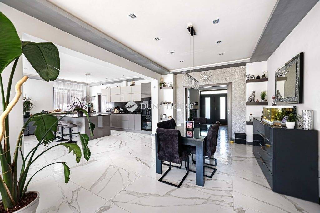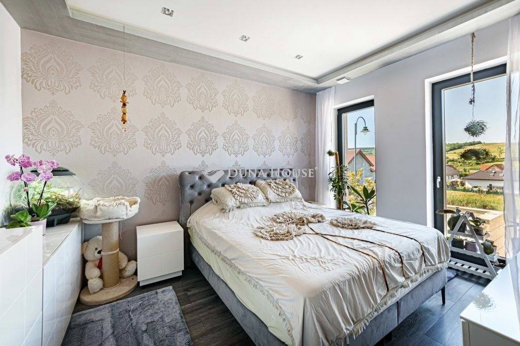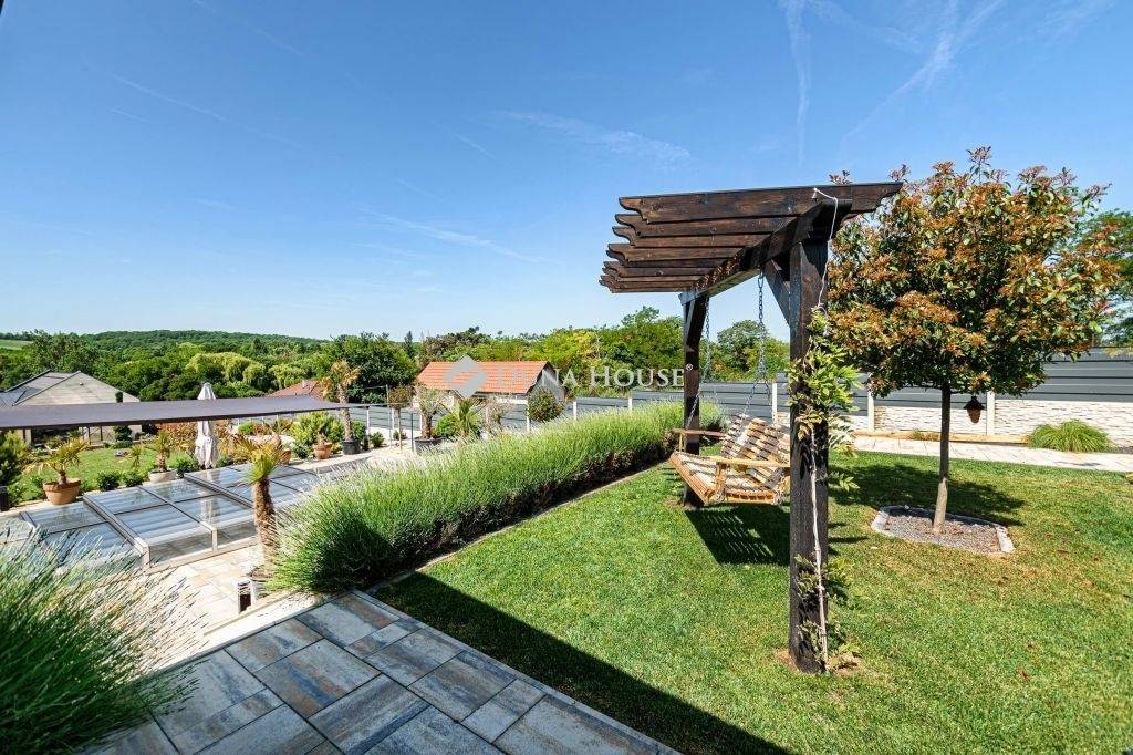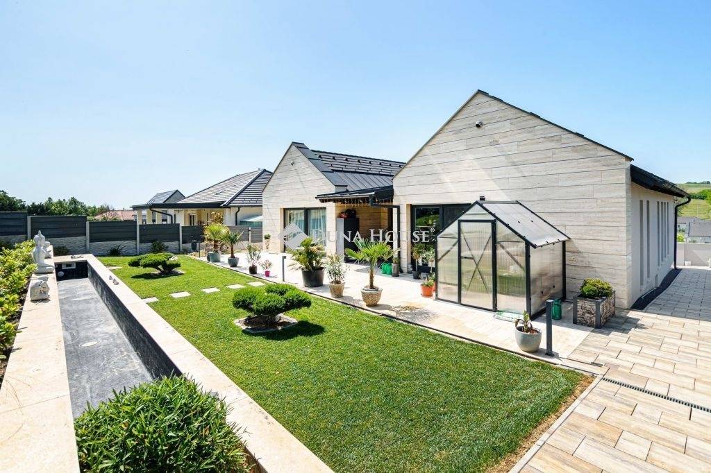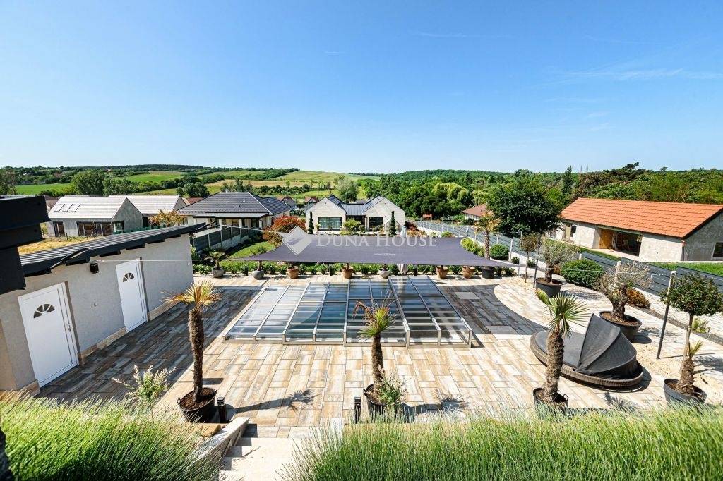 Ne hagyja ki ezt a ritka lehetőséget, hogy Etyek családi házas, intim lakóparki részén egy valóban páratlan családi ház tulajdonosává válhasson.Ez az etyeki ingatlan nem csak egy otthon, hanem egy biztonságot és nyugalmad adó élettér, ahol a luxus és a minőség minden egyes négyzetméteren érezhető. Tökéletes választás azok számára, akik a csendes agglomerációs településen kívánnak élni, de mégis közel a fővároshoz, mindezt egy olyan elegáns, környezettudatos és alacsony rezsi költségeket garantáló otthonban, mely valóban megfelel minden igénynek. A villa kerti részén egy lenyűgöző medence, kerti konyha és gondosan megtervezett kert ad otthon a pihenésnek és szórakozásnak, míg az udvar nézet tovább erősíti azt az érzést, hogy valóban különleges helyen vagyunk.Belépve a villába, az első, ami szemet szúr, az az otthon melegét és világosságát maximálisan kihasználó, tágas belső tér. A hőszivattyúval felszerelt fűtési rendszer egész évben biztosítja a kényelmes hőmérsékletet, miközben energiatakarékos megoldást kínál. A napfényes, világos terek mellett a kert kapja a főszerepet, amely páratlan panorámát nyújt.Fedezze fel ezt a bámulatos, 2021-ben épült tégla szerkezetű luxusvillát Etyeken, a főváros szívéhez közel, de mégis egy csendes utcában. Ez a lenyűgöző ingatlan minden igényt kielégítő élettérrel, minőségi beépítéssel büszkélkedik, melyet a napfényes fényviszonyok és a páratlan külső és belső elegancia tesz teljessé.