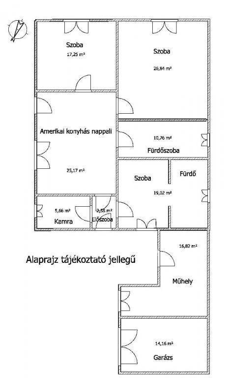 A házban amerikai-konyhás nappali, 2 db nagyobb szoba, fürdőszoba, kamra, korábban a nagyszülő részére kialakított lakrész zuhanyozóval, WC-vel és kis konyha résszel.