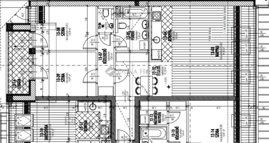 ÚJ LAKÁSOK ELÉRHETŐ ÁRON!Szeged-Alsóváros, Apáca utca közelében 11 lakásos, liftes, kulcsrakész társasház épül, a földszinten 3 db irodával, 6 db garázzsal és 8 db zárt udvari parkolóval. A modern, 5 szintes épület ( fsz., 1.em., 2.em., 3.em. , 4. em.(tetőtér) ) lakásai változatos méretben készülnek, erkéllyel , loggiával rendelkeznek.A lakásokhoz opcionálisan zárt udvari parkoló 2,9 M Ft-ért vagy garázs 8,7 M Ft-ért vásárolható.Várható szerkezetkész átadás: 2024.I.n.évA 13/A. számú lakás az épület 4. emeletén (tetőtér) található, alapterülete nettó 72,73 m2 m2, melyben nappali, konyha-étkező, 2 félszoba , fürdő és loggia került kialakításra.A környezettel való kapcsolatot az 5,94 m2-es loggia biztosítja.Össz terület: 72,73 m2 (1/2 loggiával )Az ingatlan használati megosztással (saját mérőórák) eladó, a közös 4,22 m2-es előtérből nyílik a szomszédos 13/B lakás.Néhány műszaki jellemző:Falazat:- körítő főfalak POROTHERM 30 N+F falazó tégla,- a lakások közötti hanggátló falak SILKA HM 250 NF + GT 25 cm téglából készülnekFűtés – hűtés:- a lakások fűtési illetve hűtési energiaigényét az udvari gépészeti térben elhelyezett 3 db STIEBEL ELTRON HPA-0 13 C Premium tipusú háromfázisú inverteres levegő hőszivattyú biztosítja-a mennyezet fűtési-hűtési rendszer lakásonként egy-egy külön osztó-gyűjtővel csatlakozik a központi hálózatra- napelem előkészítésNyílászárók:- 6 kamrás műanyag nyílászárók 3 rétegű üvegezésselAz épület 10 cm-es grafitos hőszigetelést kap.Az ingatlan elhelyezkedése kiváló, hiszen a Belváros bármely pontja néhány perc alatt elérhető.Közvetlen közelében villamosmegálló, klinikák valamint számos oktatási intézmény található.Az autóút mellett európai szintű kerékpár- és gyalogúton be is sétálhatunk vagy kerekezhetünk a Belvárosba.Ajánlom azoknak, akik modern otthont szeretnének, de befektetési célra is remek lehetőség.MINDEN TOVÁBBI RÉSZLETTEL, VALAMINT MŰSZAKI ALAPRAJZZAL ÉS SZEMÉLYESMEGTEKINTÉSSEL KAPCSOLATBAN VÁROM HÍVÁSÁT!FORDULJON HOZZÁM BIZALOMMAL!