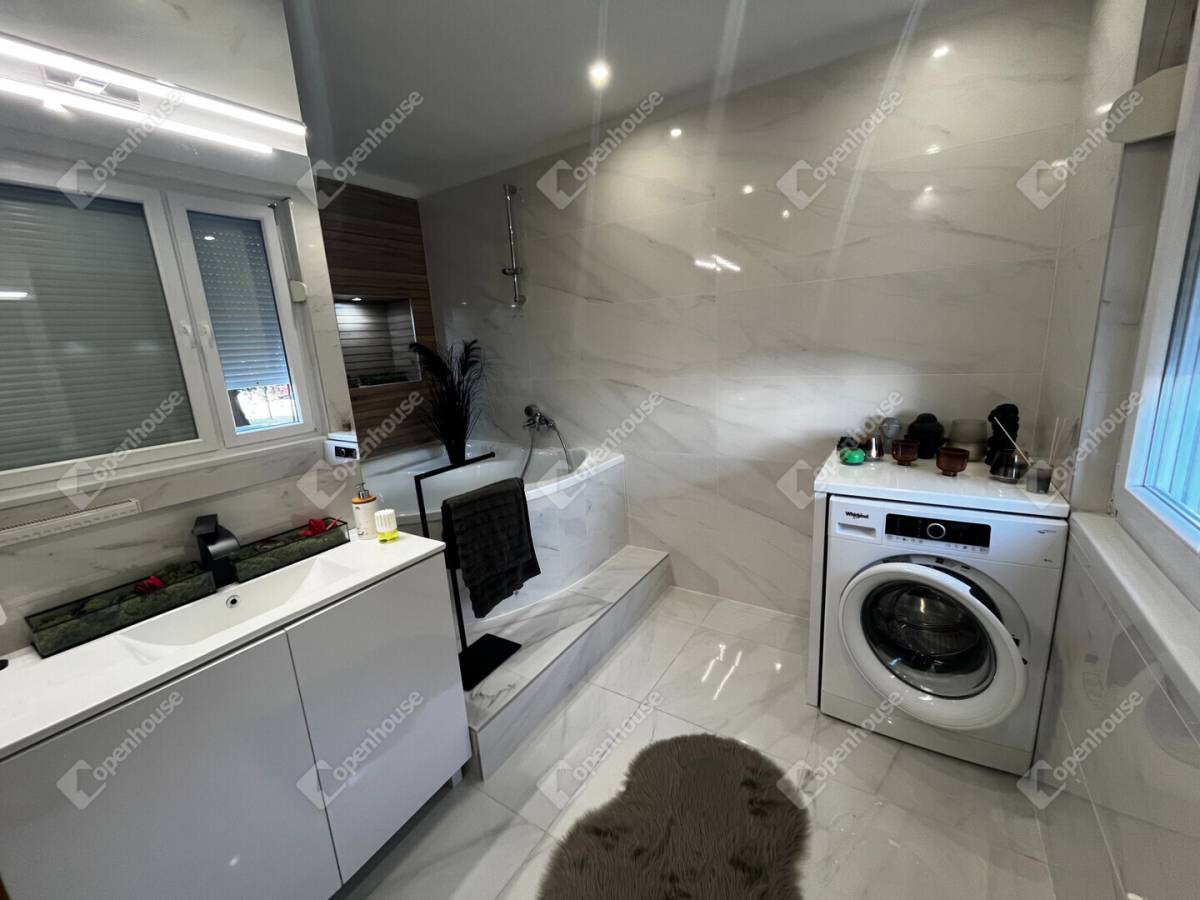 A szobákban kiváló minőségű laminált parketta található, a többi helyiség járólappal burkolt.