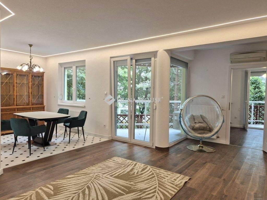 ******* English description available below *******Prémium lakás kiadó a 2. kerület szívében 3 terasszal, bérelhető teremgarázzsal és tárolóvalBérlésre kínálunk egy frissen felújított, különleges adottságokkal rendelkező, világos és kiváló állapotú lakást Budapest 2. kerületében, a csendes és zöldövezeti Labanc úton.A 103,66 m²-es ingatlan tágas terekkel és átgondolt elrendezéssel rendelkezik, ami ideálissá teszi családok, párok vagy otthonról dolgozók számára is.A lakás az első emeleten található, egy rendezett, lifttel felszerelt társasházban.Az ingatlanhoz három különálló terasz tartozik, amelyek összesen 19,3 m² kültéri életteret biztosítanak.A mindennapok kényelmét tovább növeli a lakáshoz tartozó teremgarázs beállóhely és külön tároló, melyek ára +50.000.-/hónap.A lakás frissen felújított, minden bútor és berendezés vadonatúj, így Ön lehet az első bérlő, aki élvezheti ezt a kiváló minőségű otthont. A lakás gépesített a modern, beépített konyhai eszközök mellett légkondicionáló és mosókonyha is biztosított a kényelmes mindennapokhoz.Főbb jellemzők:- Belső alapterület: 103,66 m²- 3 terasz, összesen 19,3 m²- 1. emelet, lift- Teremgarázs beállóhely és tároló bérelhető- 2 hálószoba + nappali- Külön étkező és konyha- Frissen felújított, új bútorokkal és berendezéssel- Csendes, zöldövezeti környezet, mégis központi elhelyezkedésA környék kiváló infrastruktúrával rendelkezik: bevásárlási lehetőségek, tömegközlekedés, iskolák és természetközeli kirándulóhelyek is rövid távolságra elérhetők.A lakás azonnal költözhető. A képeken szereplő bútorzat a bérleti díj részét képzi.További információkért, megtekintésért hívjon bizalommal!******************************Premium apartment for rent in the heart of district 2 with 3 terraces, rentable underground parking, and storage roomWe are offering for rent a freshly renovated, high-quality apartment with exceptional features in one of the most sought-after areas of Budapest, located in the quiet and green surroundings of Labanc Street, District 2.This 103.66 m² property boasts spacious rooms and a thoughtfully designed layout, making it ideal for families, couples, or those working from home.Situated on the first floor of a well-maintained building with an elevator, the apartment includes three separate terraces totaling 19.3 m² of outdoor living space.Daily comfort is further enhanced by the underground parking space for 1 car and a private storage unit, for an additional 50.000 HUF/month.Main characteristics:- Interior floor area: 103.66 m²- 3 terraces, total of 19.3 m²- 1st floor, elevator- Rentable underground parking space and private storage room- 2 bedrooms + spacious living room- Separate dining area and kitchen- Freshly renovated with all-new furniture and appliances- Located in a quiet, green neighborhood, yet close to all urban conveniencesThe neighborhood offers excellent infrastructure: shops, public transport, schools, and nature trails are all just minutes away.The apartment is immediately move-in ready. The furniture shown in the pictures is part of the rental fee.For more information or to arrange a viewing, feel free to get in touch!
