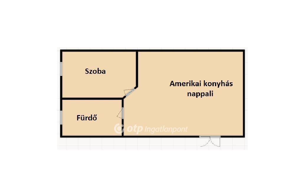 A fürdőben sarokkád, beépített konyhabútor van. Hűtő-fűtő klímával felszerelt.