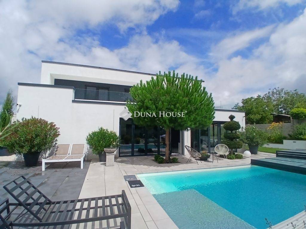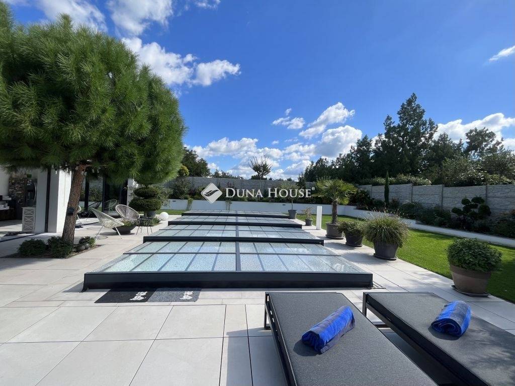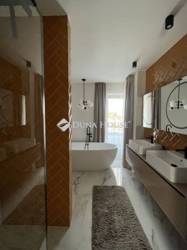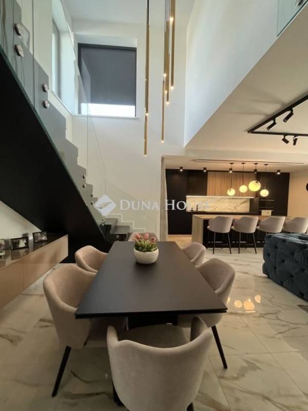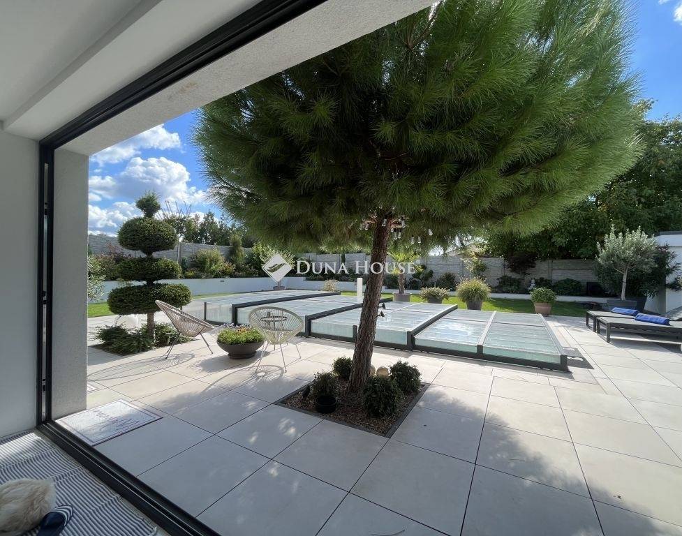 MINIMALISTA STILUSÚ PENTHOSE HÁZ !Eladásra kínálunk egy 2022-ban épült, napfényes, téglaépítésű családi házat a csendes kertvárosi övezetben fekvő Lenc telep kedvelt részén. A modern, minimalista stílusban megálmodott ingatlan a legújabb technológiai megoldásokkal, köztük hőszivattyús fűtési rendszerrel van felszerelve, ami egész évben biztosítja az otthon melegét és a környezettudatos energiagazdálkodástEz az ingatlan tökéletes választás lehet azok számára, akik egy modern és elegáns otthont keresnek csendes, zöld környezetben, de nem akarnak lemondani a város közelségének kényelméről sem. Összességében egy kiváló élettér, ahol a nyugodt pihenés és a mindennapi élet praktikumai tökéletes harmóniában ötvöződnek.Az otthont adó kertvárosi övezet nyugodt, csendes környezetet biztosít lakói számára, miközben a belváros könnyedén és gyorsan megközelíthető, így a mindennapi élet szükségleteinek kielégítése nem okoz gondot. Az autópálya csupán 10 percre található, ami kiváló hír azok számára, akiknek fontos az ország más részeibe való gyors hozzáférés.Az otthon nem csak a funkcionalitásáról és magas színvonalú technikai felszereltségéről ismert, hanem tervezésénél nagy hangsúlyt fektettek a kényelem és a pihenés lehetőségére is. A hangulatos, gondozott kert, ahol különleges növényzet vonzza a tekintetet, ígéretes helyszín családi és baráti összejövetelekre. Az ingatlan területén található, saját wellness részleg, beleértve az úszómedencét is, mindennapjainkba csempész luxust és felfrissülést.Az ingatlanban található összes bútor a vételár részét képezi.Extrák: Wellness központ: 8 x 4 x 1,5 méteres, ellenáramoltatós, 10 kW hőszivattyúval fűtött és fedett medence, szauna, fitnesz-terem és pihenő sarok. Grillezőterasz, melyet 3x4 méteres alumínium pergola fed be, elektromosan mozgatott lamellákkal és ledes világítótestekkel. Ajax okos riasztórendszer, távoli eléréssel és vezérléssel. HD felbontású kamerával szerelt kaputelefon. HD felbontású és éjjellátó biztonsági kamerarendszer, 8 db kamerával, melyek távolról vezérelhetőek és ellenőrizhetőek. Kétállásos garázs, szekcionált és hőszigetelt ajtóval, mobilról nyitható, elektromos úszókapuval. A garázs előtt 40 nm fedett kocsibeálló található, így összesen 4db autó elhelyezése megoldott az ingatlan kerítésén belül. 71 négyzetméteres, nyitott, panoráma tetőterasz. Okosotthon rendszerek megvalósításához csillagpontos hálózat teljesen kiépítve és kábelezve. Kerti tárolóban található egy mosdó / wc, a medence gépészeti helyisége és egy 20 nm tárolóhelyiség. A kerti és kültéri világítás minden elemét lakberendező tervezte és kiviteleztette, természetesen ledes világítótestekkel. Esztétikusan és harmonikusan parkosított kert, 8 körös automata öntözőrendszerrel és csepegtetővel.Műszaki tartalom: A használati melegvízhez és a fűtéshez dedikált, 16kW hőszivattyú lett beépítve (villanyórától külön kiépített kábelen), amihez 300 literes melegvíz-tároló és a fűtéshez külön 190 literes puffertartály tartozik. BWT vízlágyító rendszerrel kezelt víz. Padlófűtés található minden helyiségben és a téliesíthető teraszon is, a legmodernebb, wifi-s, okos termosztátokkal szabályozva, így minden helyiségben a hőfokok külön állíthatóak. 3 szeparált fűtési kör, külön fűthető az emelet és a földszint két része. 3*32 Amper elérhető az ingatlanban. Nagy teljesítményű, 12,5 kW napelemes rendszer a lapostetőn, Solplanet inverterrel szerelve, oda-vissza mérő villanyórával. A ház elmúlt éves használata alapján teljesen passzív a ház energiafogyasztása, 0 az áramköltsége. Az ingatlan energetikai besorolása AA++. Gáz nincs bekötve egyáltalán, a konyha teljesen elektromos Whirpool (6th Sense) gépekkel van szerelve (még garanciális mindegyik). 6 db inverteres hűtő-fűtő klíma. Berg System gyártmányú, 3 rétegű, melegperemes, 7 légkamrás alumínium nyílászárók, amelyeken mindegyiken motoros aluredőny található. Hőszigetelt, szekcionált garázskapu és elektromotoros mozgatású úszókapu. Fűtött terasz, összecsukható (harmónika) - Berg system gyártmányú - teraszajtókkal, melyek telente teljes értékű lakórésszé varázsolják a teljes teraszt. A kerti tároló, valamint a medence gépészete és fűtése külön áramellátással rendelkezik. Minden világítótest és lámpa az ingatlanban kívül és belül ledes.Szerkezet: Pillérvázas tartószerkezet, monolit vasbeton gerendákkal. Porotherm 30 N+F téglából készült falak. Szigetelés a falakon 20 cm (hungarocell), vakolás helyett gipszkartonozással takarva. Aljzatokon 20 cm lépésálló szigetelés. Födémeken 30 cm lépésálló szigetelés.Szeretné megismerni ezt a különleges ingatlant forduljon hozzám bizalommal.