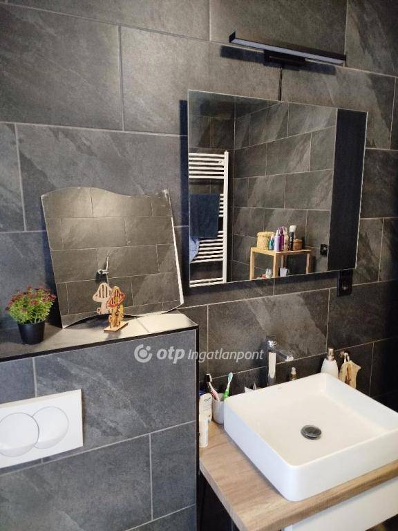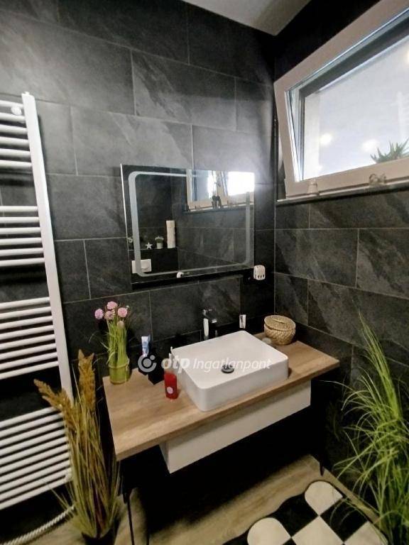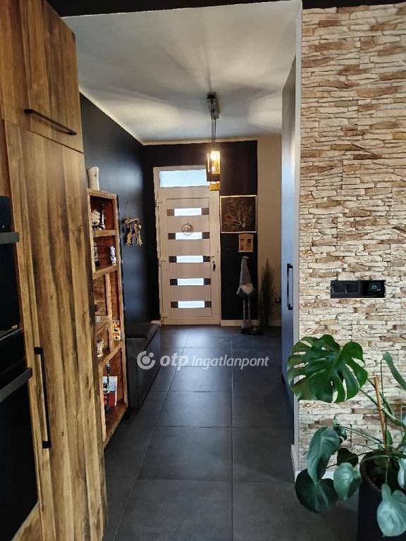 Ez a gondosan tervezet és modern stílusban kivitelezett otthon 1220 nm-en telken, nyugodt csendes környezetben. Könnyűszerkezetes nagy belmagassággal a nappali teteje szalufáig burkolva van. Melléképülete külön álló, 30 nm-es klímával, melyben jelenleg konditerem van. Nagy ablakok és tágas világos terek jellemzik.
