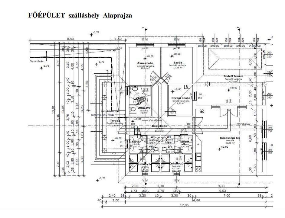 A 134 m2-es főépület központi konyhával, szobákkal, mosdókkal és zuhanyzókkal felszerelt, emellett egy 45 m2 terasz tartozik hozzá. A telken található három különálló szendvicspanel ház, mindegyik 10 férőhelyes (összesen 30 fő befogadására alkalmas), emeletes ágyakkal és kézmosóval. A komplexum része továbbá egy bemutató konyha külön épületben, vizesblokkal és 72 m2 fedett terasszal, különböző külterületi rendezvények szervezésére alkalmas. A gondosan művelt kert fűszernövényekkel, gyümölcsfákkal, kiépített öntözőrendszerrel, kemencével, tűzrakóhellyel, pergolával és ásott pincével gazdagítja a területet. Három lemeztároló is s a tulajdon részét képezi. A helyszín kiválóan alkalmas táborok, elvonulások, tréningek, családi vagy közösségi események megszervezésére.