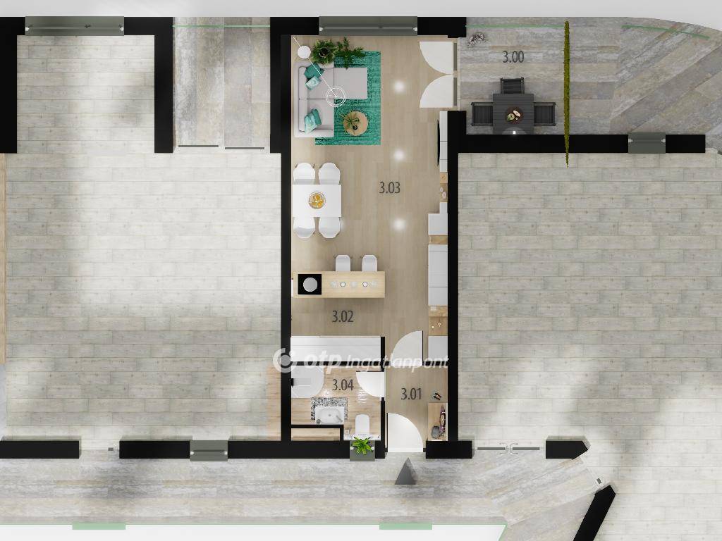 Ez a 37,07 m2-es I. emelet 3. lakás, amihez 7,1 m2 -es terasz tartozik.