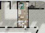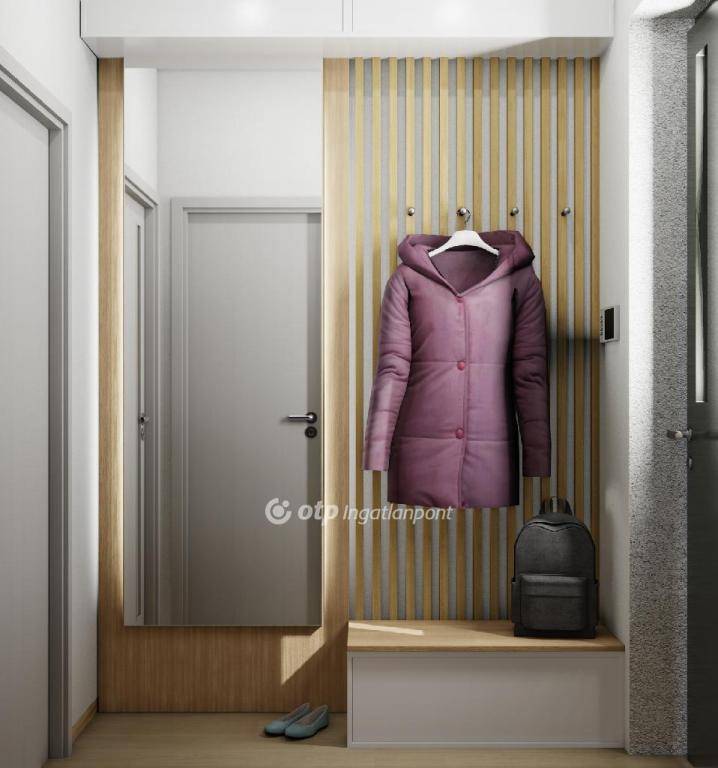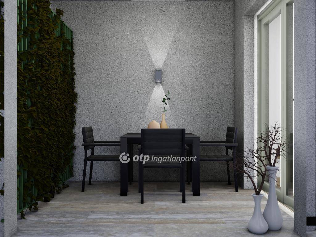 Elrendezése: Előtér: 2,9 m2, nappali: 16,48 m2, konyha+étkező: 14,19 m2, fürdőszoba 3,5 m2, terasz: 7,11 m2
