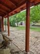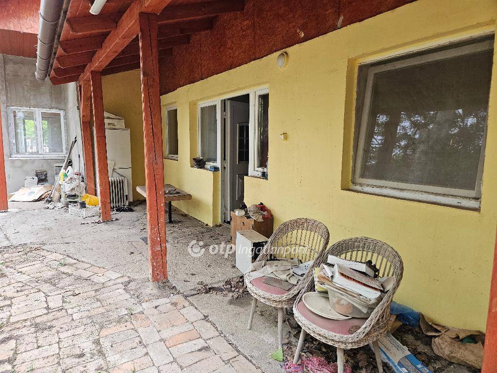 Az épület előtt végig fedett, verandaszerű terasz húzódik, ideális pihenésre, árnyékos kinti tartózkodásra.