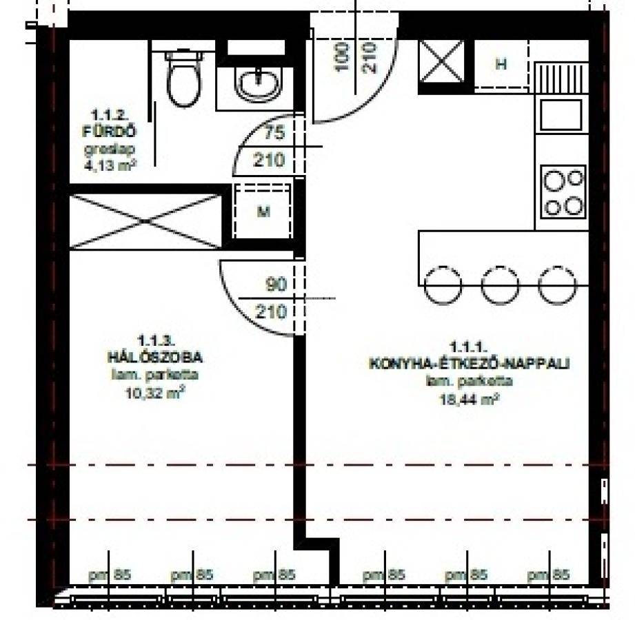 - fürdő, vizesblokk: terv szerinti elhelyezéssel