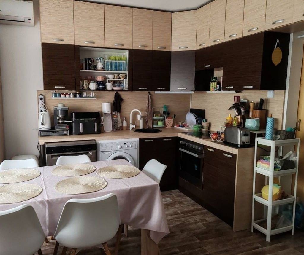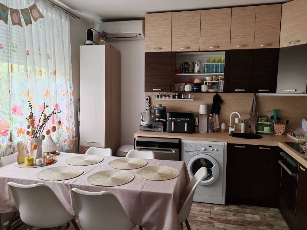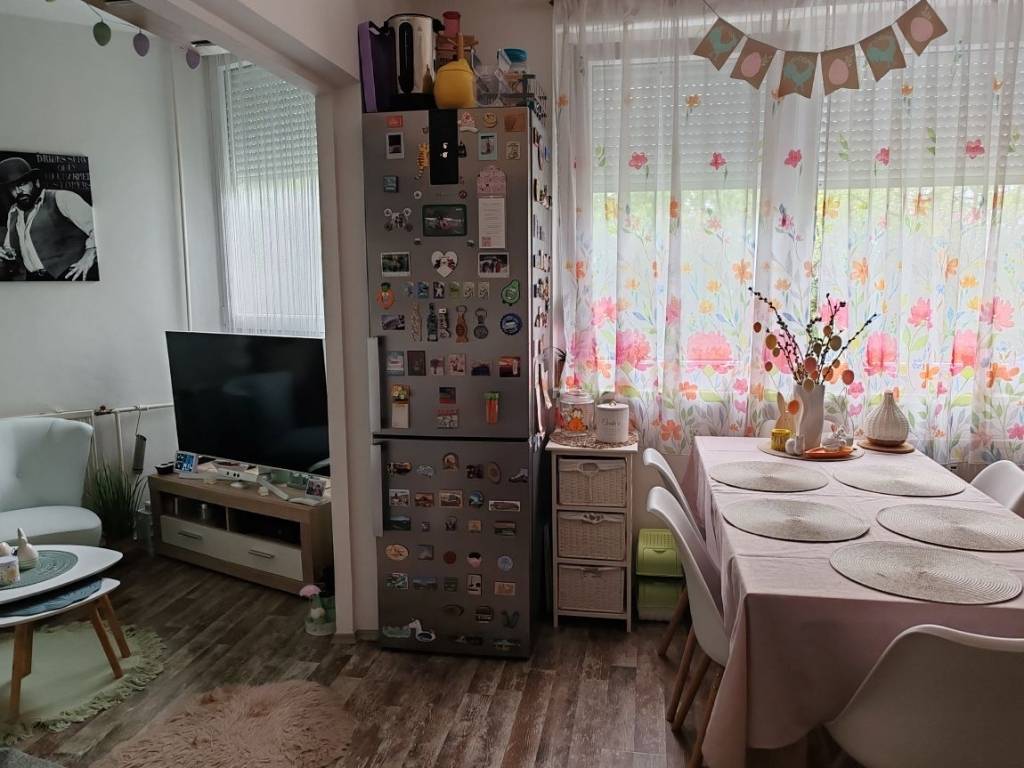 Kényelmes méretű konyha-étkező-nappali szoba egy légtérben,