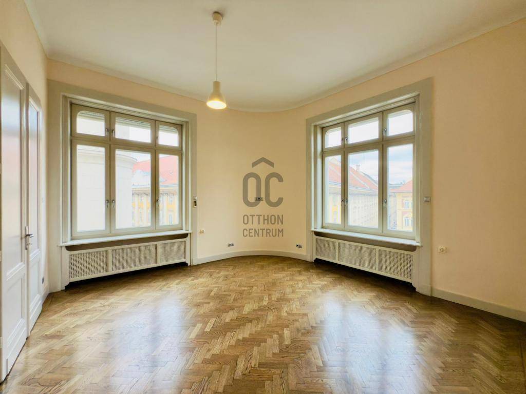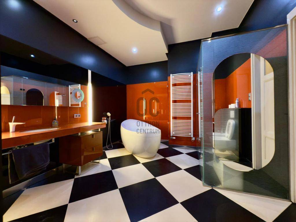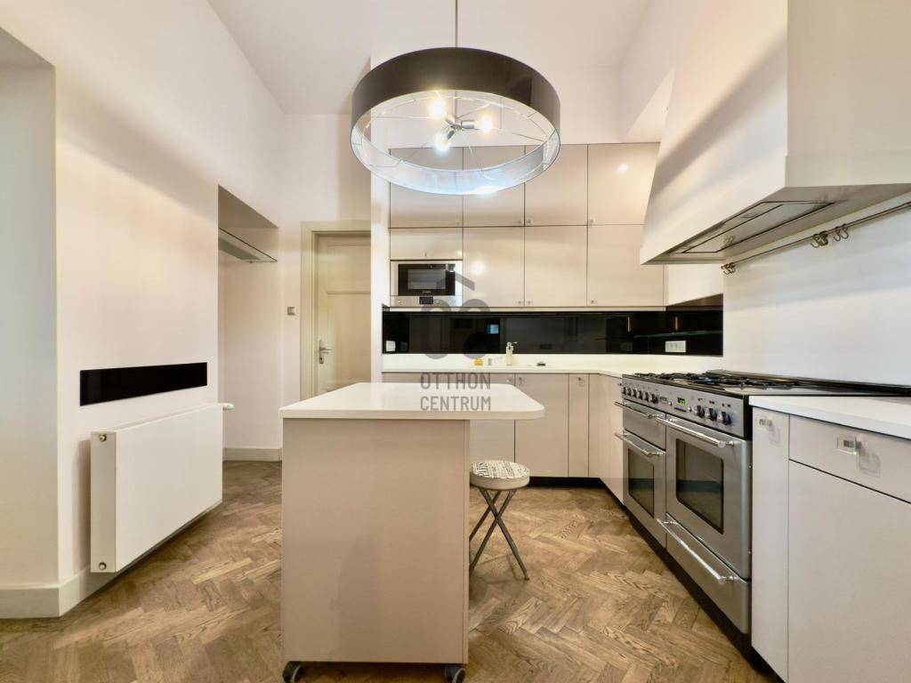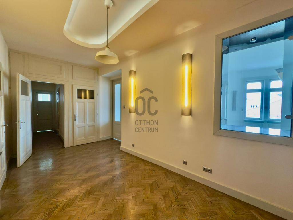 A belváros szívében, egy rendezett ház 3. emeletén kínálunk megvételre egy 160 m²-es, egyedülálló adottságú ingatlant, amely két lakás összenyitásával jött létre.