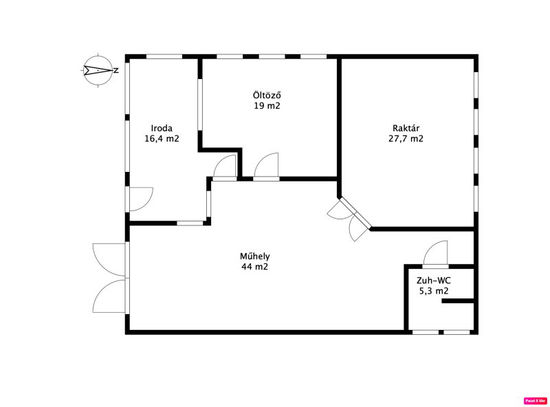 Az épületben ki van alakítva egy iroda, műhely, raktár, és egy tusoló-WC helyiség.