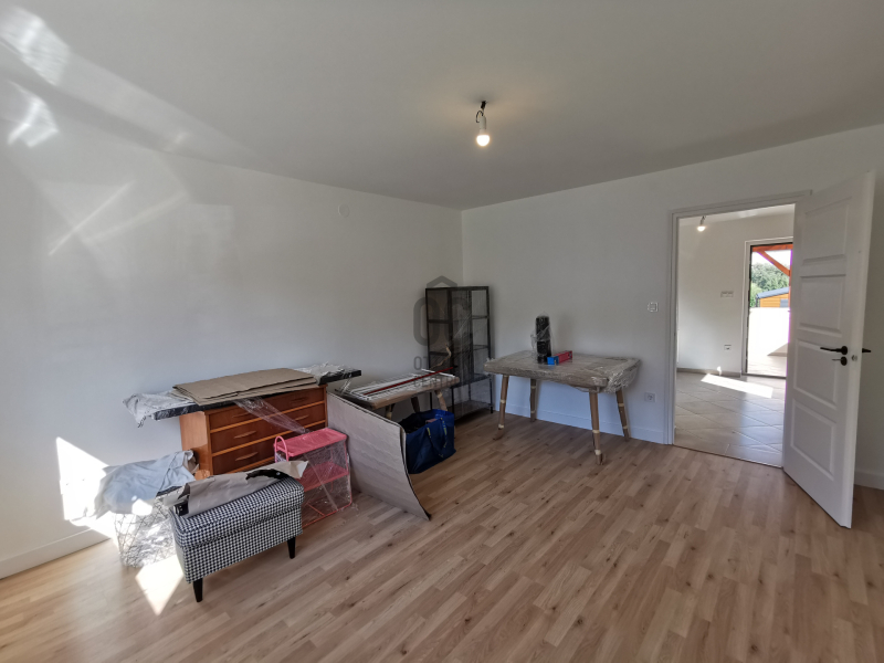 A házhoz tartozik egy 20 négyzetméteres terasz, ahol a reggeli kávéját élvezheti a természet lágy ölén, miközben a rendezett kertben pihenhet. Ezen kívül egy 20 négyzetméteres garázs is az ingatlanhoz tartozik.