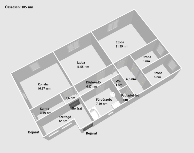 - tégla építésű családi ház, 105 m² hasznos alapterülettel