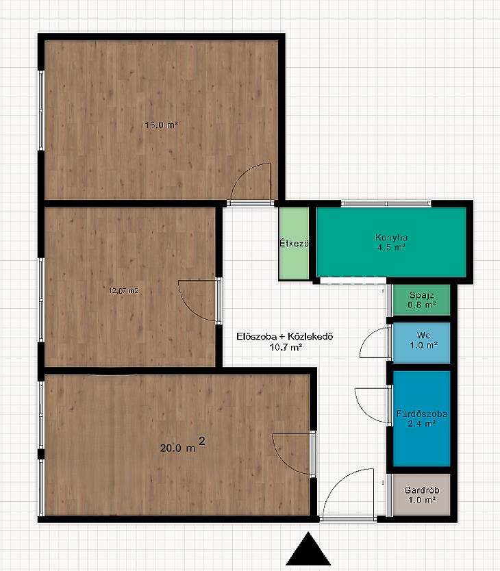 A szobákban laminált parketta, a többi helyiségnél járólap található.