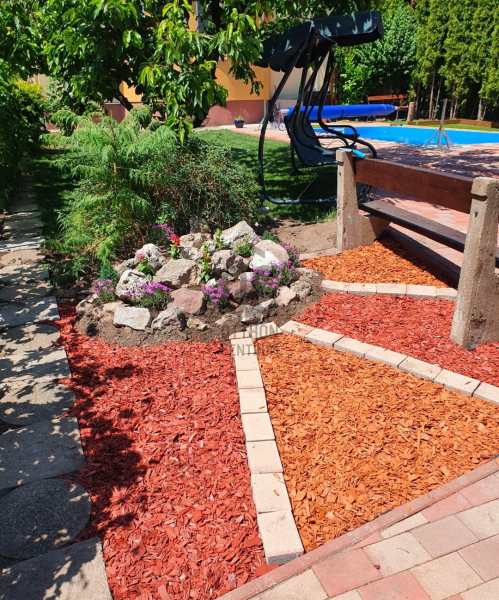 A parkosított, térkövezett udvar teljes kényelmet és élményt nyújt.