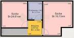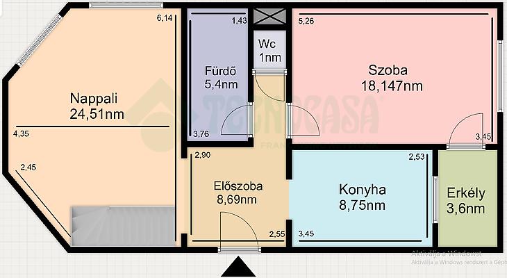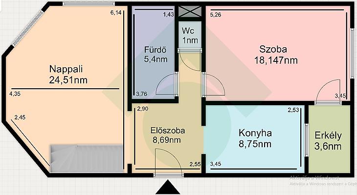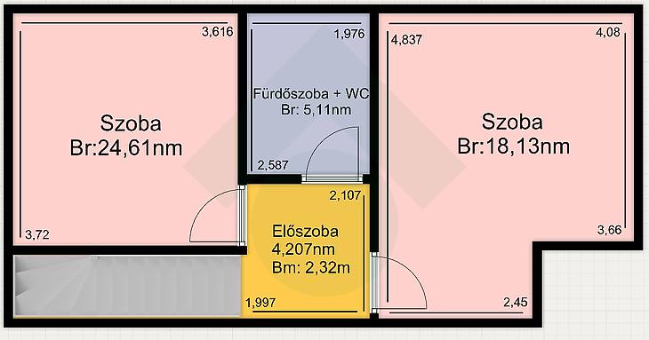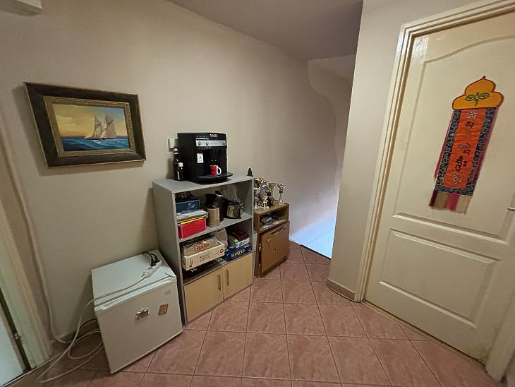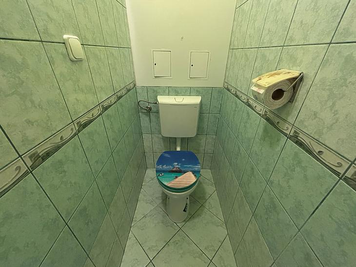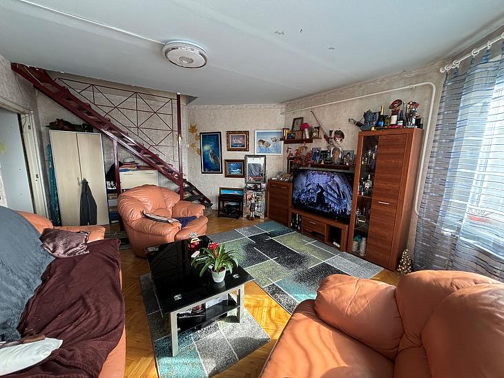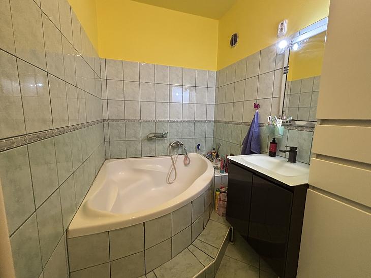 Az alsó szint 65nm-es 2szobás, közepes-jó állapotú, a szobák fa perkettásak, a többi helyiség járólapos. A villanyvezetékeket a konyhában és a fürdőszobában áthúzták, a fürdőszobát megnagyobbították, a konyhabútort és a fürdő burkolatokat kicserélték. (3éve) az ablakokat műanyag thermo üvegesre (szúnyoghálós) cserélték, a radiátorokkal együtt. A bejárati ajtó, több ponton záródó, biztonsági.