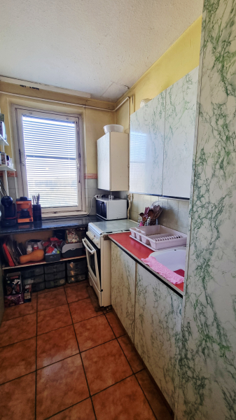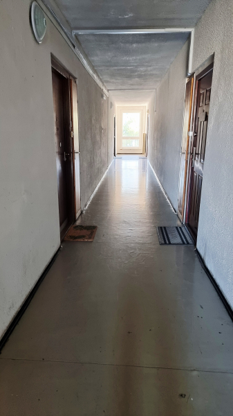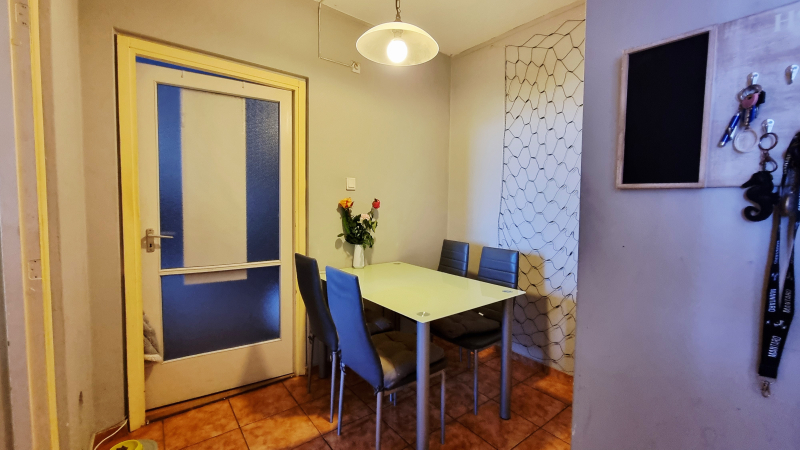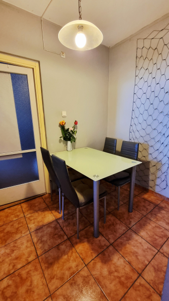 A szobái külön nyílóak és laminált parkettával burkoltak, a többi helyiségben pedig járólap található.
